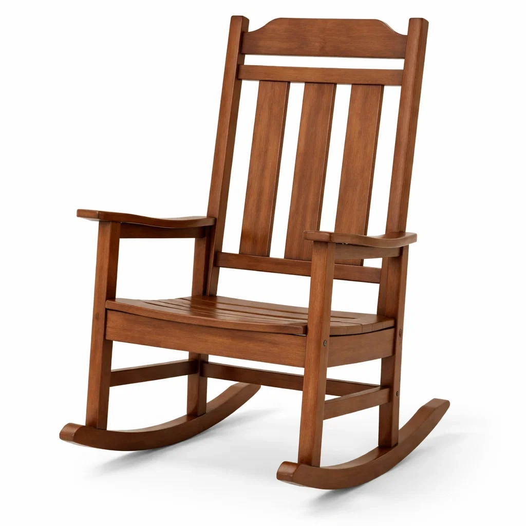 Cette chaise berçante est fabriquée en bois massif.